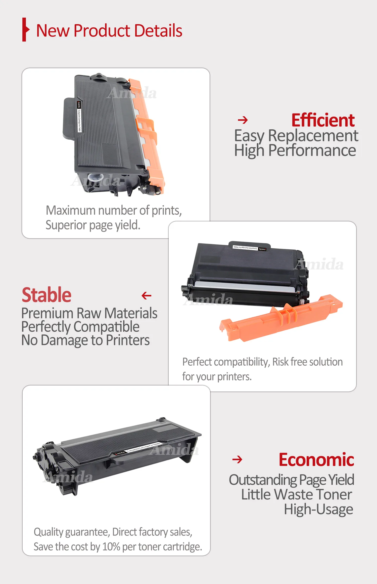 The AMIDA TN-850 compatible toner cartridge is designed for high-volume printing with consistent black output and dependable performance. Ideal for offices and businesses, it produces crisp text and smooth graphics while helping reduce printing costs compared to original cartridges.