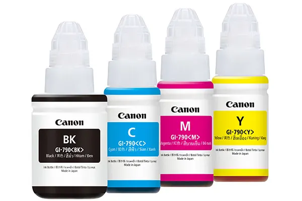 High-quality Canon GI series ink bottles designed for Canon ink tank printers, delivering sharp text, vibrant color output, and high page yield printing.