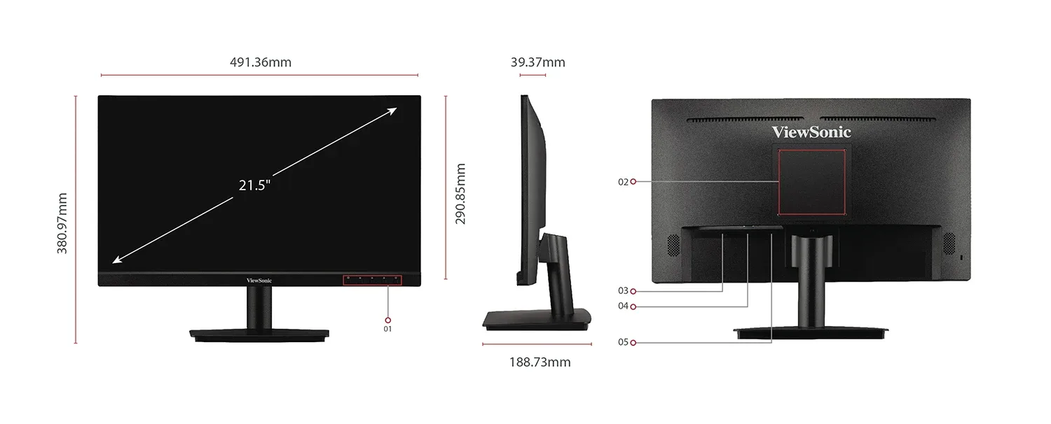 The ViewSonic VA2209-H-2 is a 22″ Full HD monitor featuring HDMI and VGA inputs for business and home use. The optimal screen performance and comfortable viewing without tearing or stuttering is delivered through variable refresh rate, eye-care technology, and various ViewMode presets. Experience truly seamless multitasking on just one screen with a VESA-compatible mount at low power consumption.